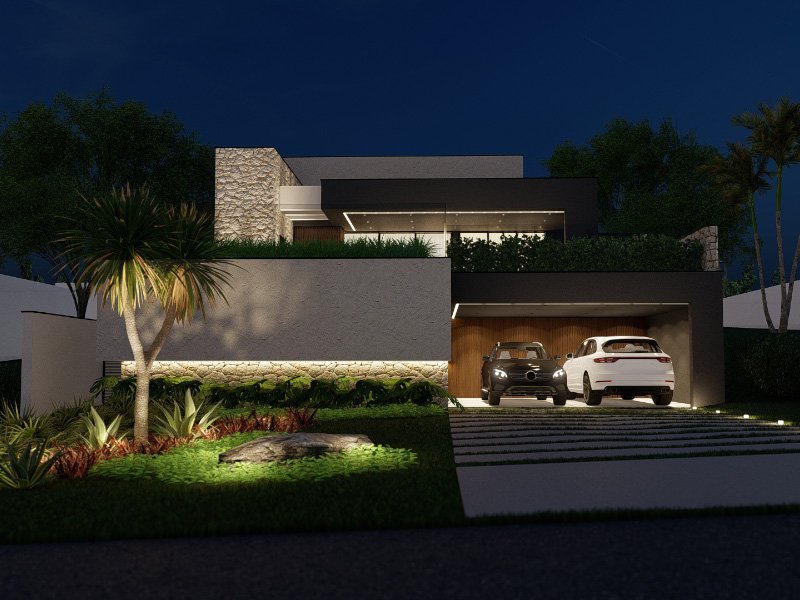 Casa de alto padrão em conceito aberto, 4 suítes, área gourmet, piscina, 402 m² de área construída no Condomínio Villas do golfe